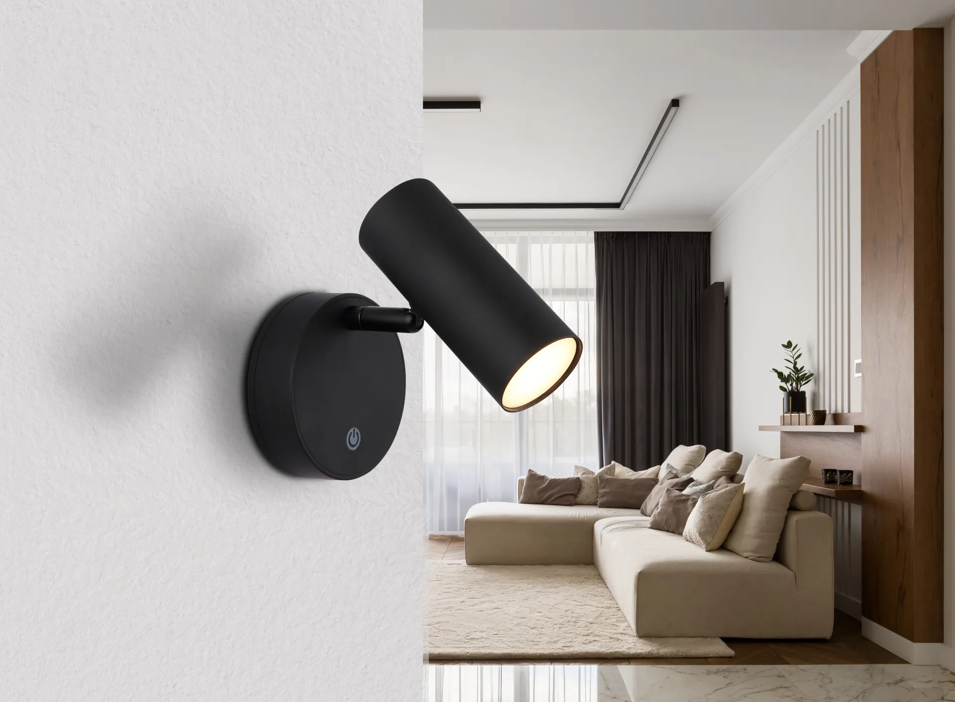 Der Akku Wandstrahler ELLI vereint Funktionalität und modernes Design in einem kompakten Format. Sein rundes Wandschild-Design wird durch den zylindrischen Strahler ergänzt, der an einer innovativen Magnetbefestigung angebracht ist und flexibel ausgerichtet werden kann.