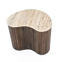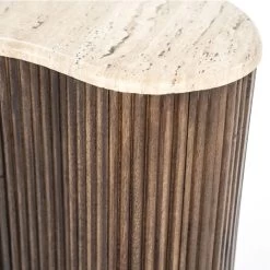 Unser Couchtisch Bean wird zum wahren Blickfang in deinem Wohnzimmer. Seine Tischplatte besteht aus hochwertigem Travertin, einem wunderschönen Naturstein, der in Kombination mit dem dunklen Mangoholz einen reizvollen Kontrast schafft und deinem Raum einen skandinavischen Look verleiht. Die organische Form von Mari verleiht dem Couchtisch einen verspielten und einzigartigen Charme.