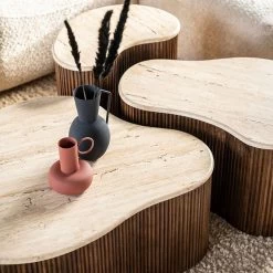 Verleihe deinem Zuhause mit dem Couchtisch Bean einen Hauch von skandinavischer Eleganz und Naturschönheit.