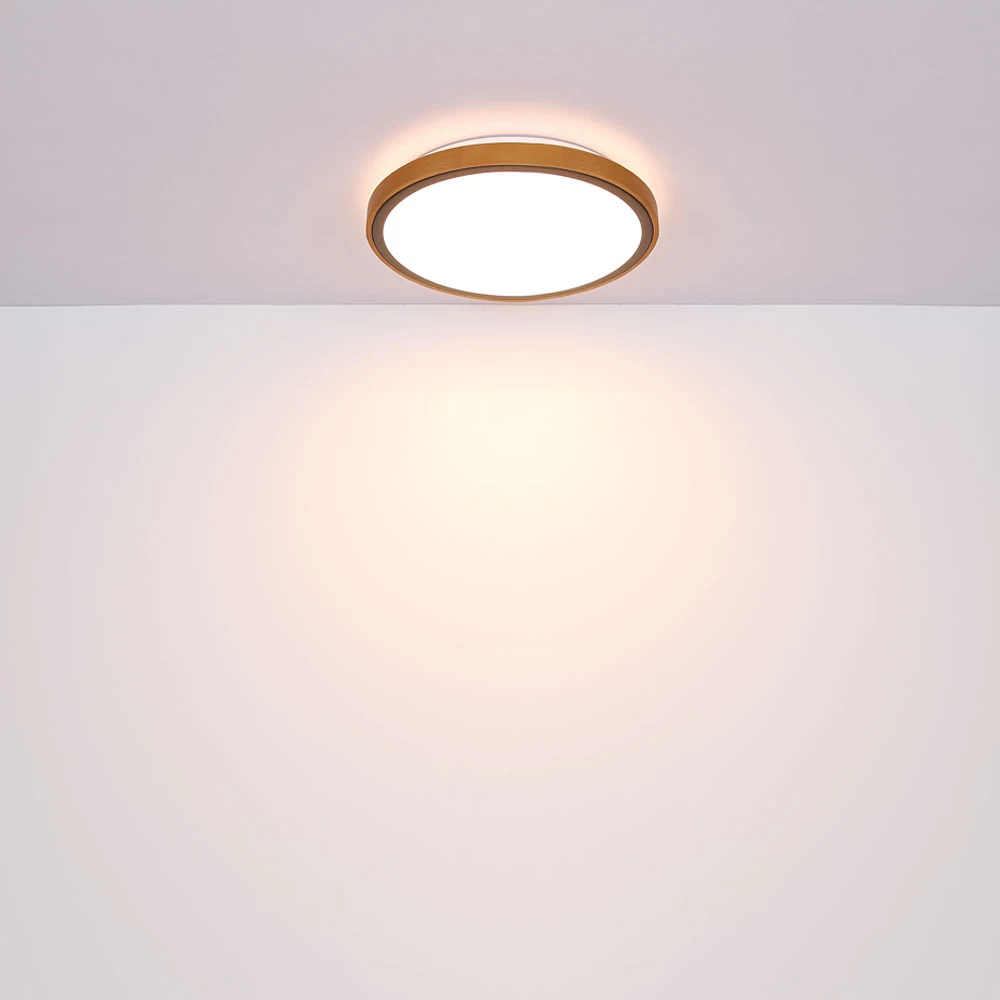 Mit ihrem eleganten runden Design wird sie sicherlich deinen Raum aufwerten. In einem robusten Holzrahmen verbirgt sich eine leistungsstarke LED-Platine, die von zusätzlichen Metallrahmen umgeben ist. Diese Leuchte bietet dir die Möglichkeit, das Licht nach deinen Wünschen anzupassen. Du kannst zwischen den Lichtstufen 3000 Kelvin warmweiß, 4500 Kelvin neutral und 6000 Kelvin kaltweiß wählen und die gewünschte Helligkeit fixieren.