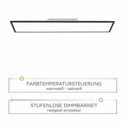Die Deckenleuchte Frame In&Out überzeugt durch ihr schmales und unauffälliges Design. Ihre rahmenlose Form, nach der sie benannt ist, besteht aus Kunststoff und ist in verschiedenen Farben erhältlich. An der Decke ist sie einfach zu montieren und nimmt wenig Raum ein und ist der perfekte Problemlöser für dunkle Räume, die keine auffällige Leuchte benötigen. Ihre Leuchtleistung liegt bei 4300 Lumen und eignet sich hervorragend für ein Arbeitszimmer oder den Homeofficebereich. Auch für das Schlafzimmer, das Badezimmer oder Ankleidezimmer überzeugt das Panel durch seine Farbverstellbarkeit und das unauffällige Design. Die Lichtfarbe kann zwischen warm weiß, neutralweiß und Tageslicht umgestellt werden, sodass Sie sich das Licht für jeden Gebrauch individuell umstellen können. Eine stufenlose Dimmung ist hierbei über die Fernbedienung möglich mit einer zusätzlichen Memoryfunktion (speichert die letzte Einstellung). Ein zusätzlicher Wanddimmer muss nicht verbaut werden, da die Leuchte ganz normal über die Wandschalter ein- und ausgeschaltet werden kann.
