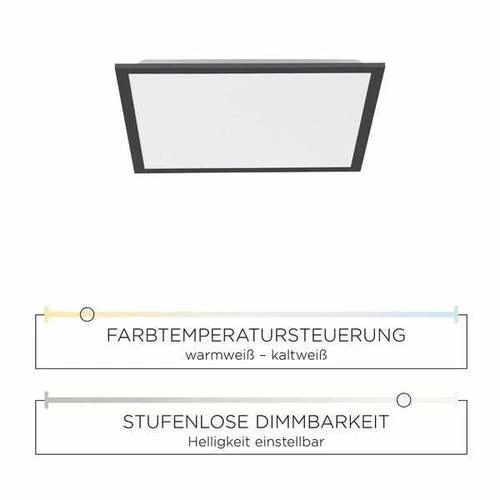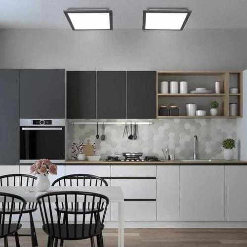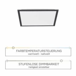 Die Deckenleuchte Frame überzeugt durch ihr schmales und unauffälliges Design. Ihre umrahmende Form, nach der sie benannt ist, besteht aus Kunststoff und ist in verschiedenen Farben erhältlich. An der Decke ist sie einfach zu montieren und nimmt wenig Raum ein und ist der perfekte Problemlöser für dunkle Räume, die keine auffällige Leuchte benötigen. Ihre Leuchtleistung liegt bei 2100 Lumen und eignet sich hervorragend für ein Arbeitszimmer oder den Homeofficebereich. Auch für das Schlafzimmer, das Badezimmer oder Ankleidezimmer überzeugt das Panel durch seine Farbverstellbarkeit und das unauffällige Design. Die Lichtfarbe kann zwischen warm weiß, neutralweiß und Tageslicht umgestellt werden, sodass Sie sich das Licht für jeden Gebrauch individuell umstellen können. Eine stufenlose Dimmung ist hierbei über die Fernbedienung möglich mit einer zusätzlichen Memoryfunktion (speichert die letzte Einstellung). Ein zusätzlicher Wanddimmer muss nicht verbaut werden, da die Leuchte ganz normal über die Wandschalter ein- und ausgeschaltet werden kann.