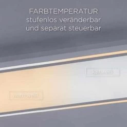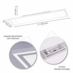 Die Deckenleuchte Frame In&Out überzeugt durch ihr schmales und unauffälliges Design. Ihre rahmenlose Form, nach der sie benannt ist, besteht aus Kunststoff und ist in verschiedenen Farben erhältlich. An der Decke ist sie einfach zu montieren und nimmt wenig Raum ein und ist der perfekte Problemlöser für dunkle Räume, die keine auffällige Leuchte benötigen. Ihre Leuchtleistung liegt bei 4300 Lumen und eignet sich hervorragend für ein Arbeitszimmer oder den Homeofficebereich. Auch für das Schlafzimmer, das Badezimmer oder Ankleidezimmer überzeugt das Panel durch seine Farbverstellbarkeit und das unauffällige Design. Die Lichtfarbe kann zwischen warm weiß, neutralweiß und Tageslicht umgestellt werden, sodass Sie sich das Licht für jeden Gebrauch individuell umstellen können. Eine stufenlose Dimmung ist hierbei über die Fernbedienung möglich mit einer zusätzlichen Memoryfunktion (speichert die letzte Einstellung). Ein zusätzlicher Wanddimmer muss nicht verbaut werden, da die Leuchte ganz normal über die Wandschalter ein- und ausgeschaltet werden kann.