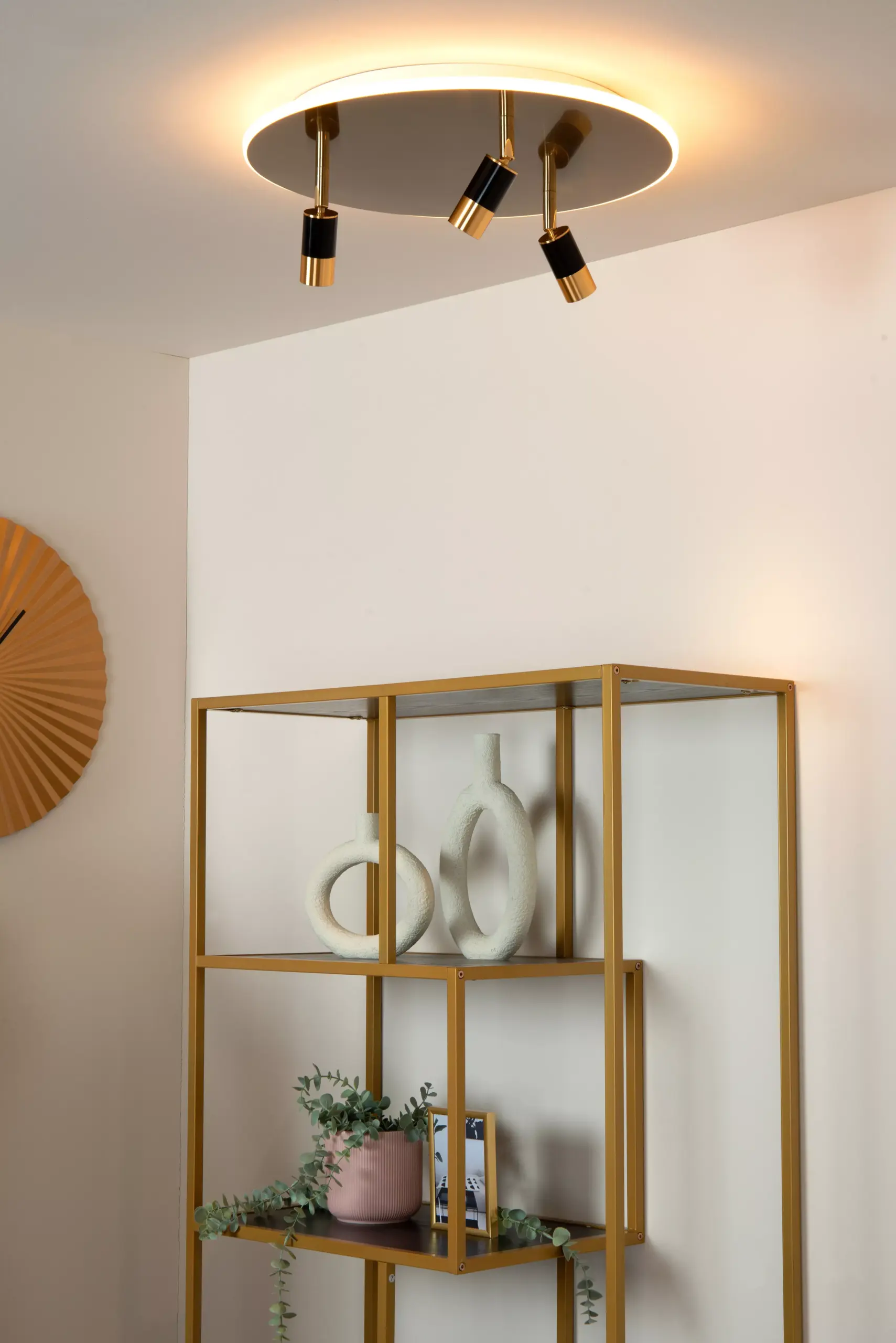 Die Deckenleuchte Jule 3er wird direkt an den Lichtschalter angeschlossen und überzeugt durch ihre hochwertige Verarbeitung aus robustem Stahl. Die Kombination aus mattem Gold und Schwarz verleiht ihr eine edle Optik, die perfekt zu modernen Wohnkonzepten passt. Dank der dreh- und schwenkbaren Strahler lässt sich die Beleuchtung individuell anpassen, sodass Sie immer das ideale Licht für jede Situation haben.