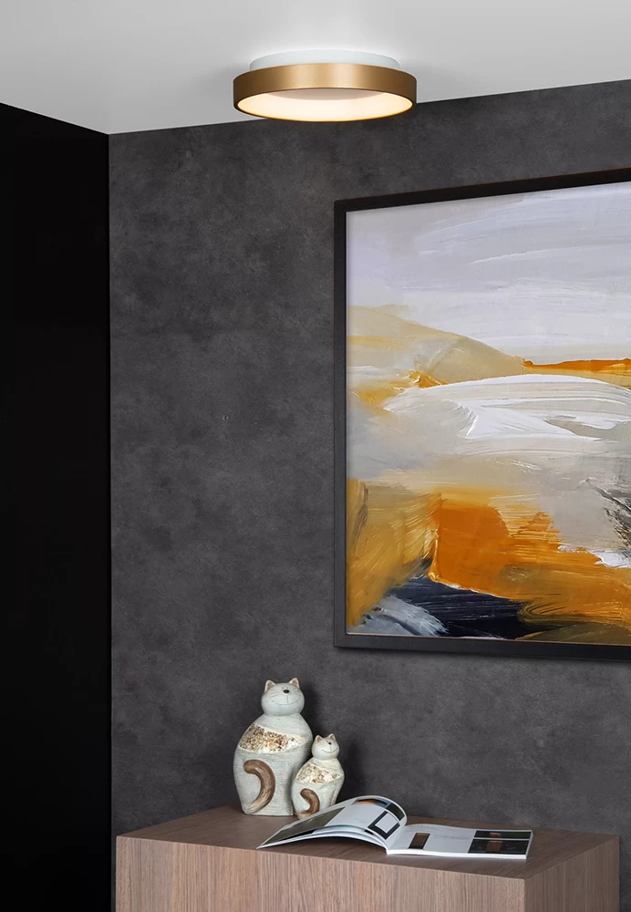 Entdecke unsere minimalistische Deckenleuchte Kiyan. Mit ihrem schlichten Design und klaren runden Formen passt sie perfekt zu einer reduzierten Inneneinrichtung und schafft ein harmonisches Ambiente. Die Deckenleuchte Kiyan bietet dir die Möglichkeit, die Lichtintensität nach deinen individuellen Vorlieben anzupassen.