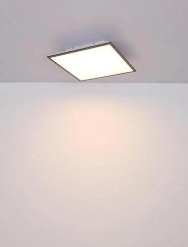 Das quadratische, extrem flache LED Deckenpaneel passt nahezu in jeden Raum. Vor allem Räume mit hohem Beleuchtungsbedarf können gleichmäßig mit einem angenehmen warmweißen Licht beleuchtet werden. Das LED-Leuchtmittel ist fest verbaut und kann nicht ausgetauscht werden. Trotz der Größe ist die Leuchte aufgrund der Verwendung leichter Materialien sehr leicht.