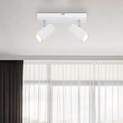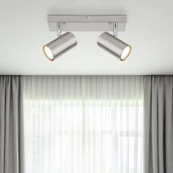 Der Dari Deckenstrahler verfügt über zwei GU10 Fassungen, die jeweils von einem zylinderförmigen Schirm bedeckt werden. Diese klare, minimalistische Gestaltung verleiht dem Strahler einen zeitlosen und eleganten Look. Dank der GU10 Fassungen haben Sie die Freiheit, aus einer Vielzahl von Leuchtmitteln zu wählen, um die gewünschte Atmosphäre zu schaffen. Der Strahler unterstützt Leuchtmittel mit einer maximalen Leistung von 35 Watt, sodass Sie eine helle und angenehme Beleuchtung genießen können.