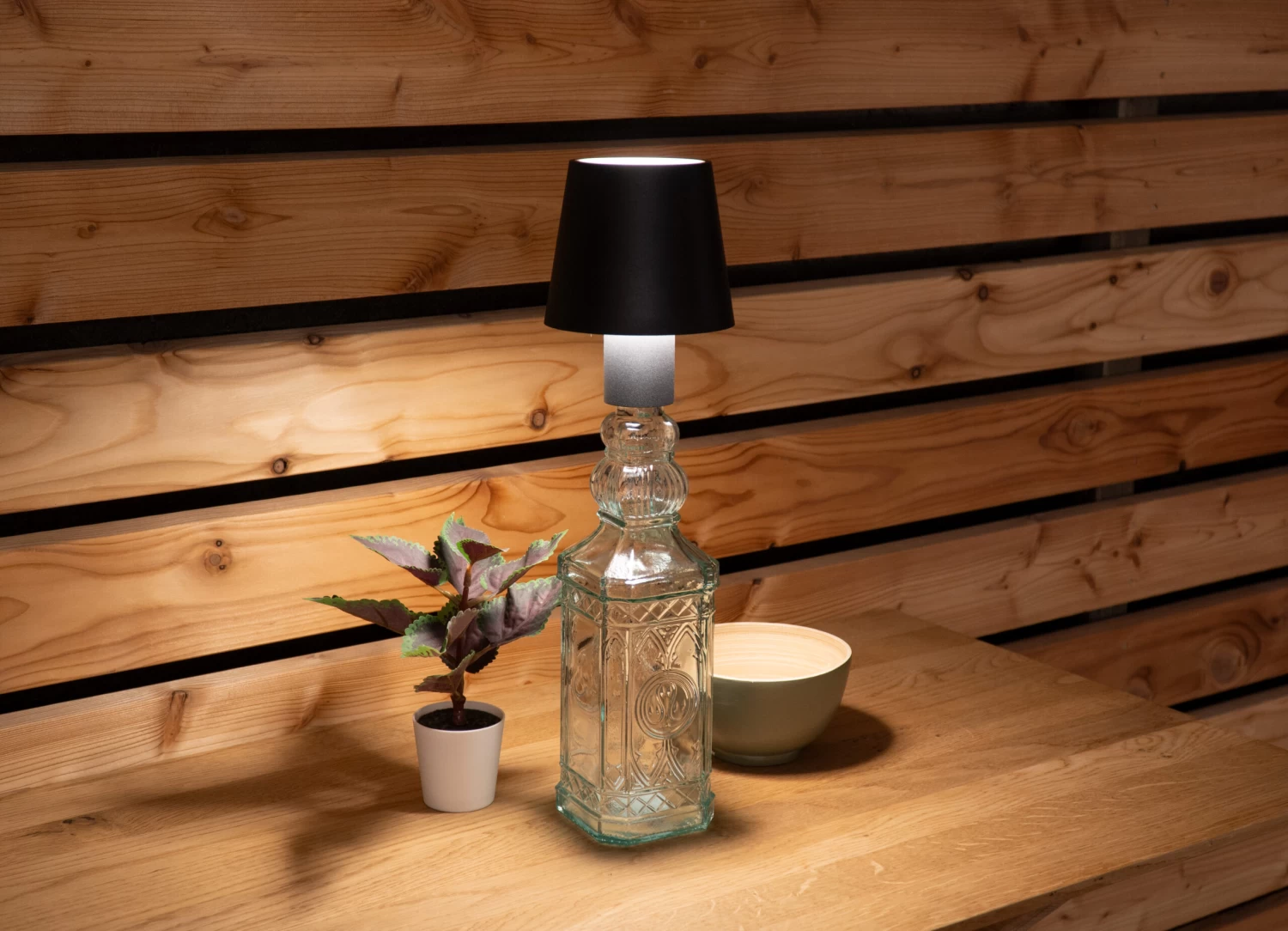 Die VANNIE Tischleuchte ist die ideale Beleuchtungslösung für alle, die Stil und Funktionalität kombinieren möchten. Speziell als Flaschenaufsatz entwickelt, verwandelt sie gewöhnliche Flaschen in außergewöhnliche Leuchten und setzt stilvolle Akzente in jedem Raum.
