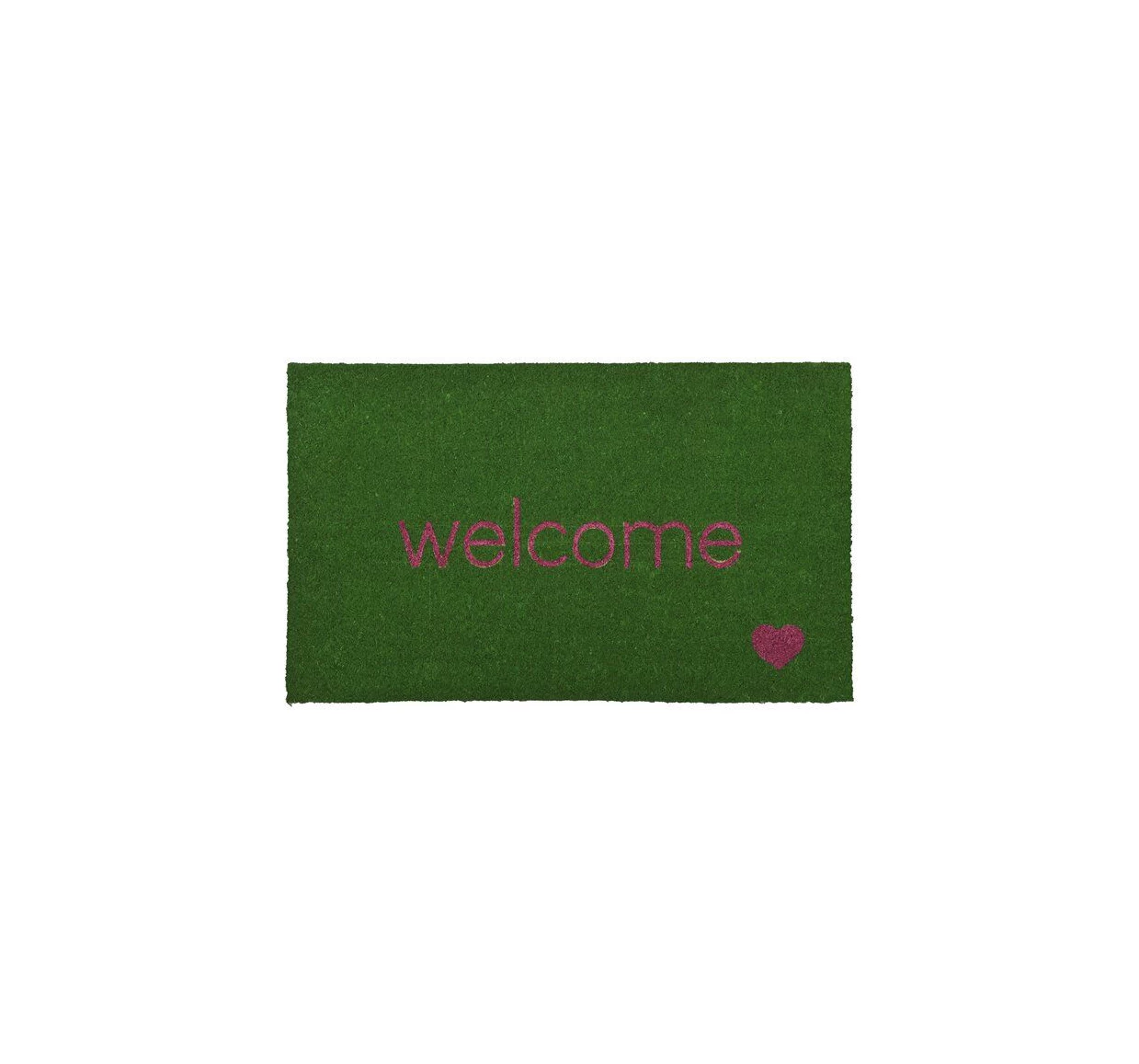 Begrüßen Sie Ihre Gäste mit der farbenfrohen Fußmatte Welcome  und setzen Sie ein stilvolles Statement vor Ihrer Haustür. Diese charmante Fußmatte in Grün bringt Frische und Lebensfreude in den Eingangsbereich und sorgt gleichzeitig für saubere Schuhe. Mit ihren kompakten Abmessungen von 45×75 cm passt sie ideal vor jede Tür.