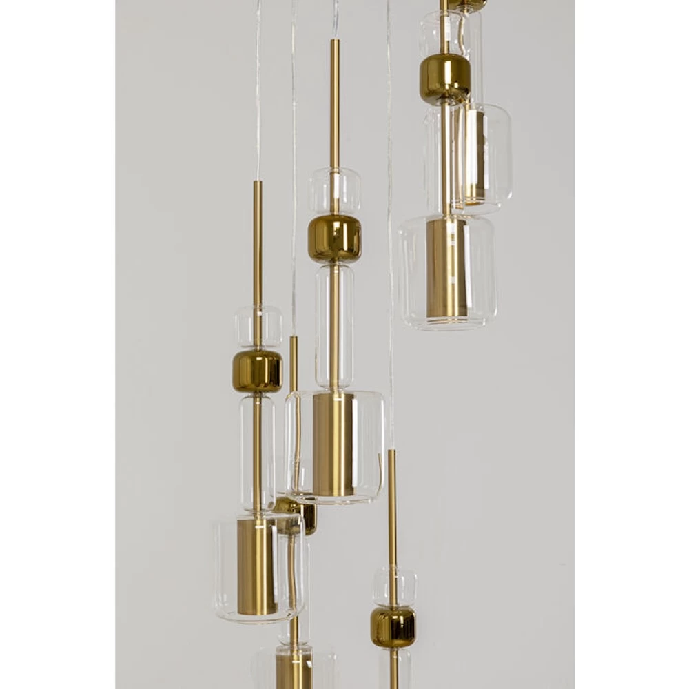 Luxuriöses Understatement verkörpert diese Pendelleuchte Elise, die sich wie ein schimmernder Wasserfall in die Tiefe des Raums ergießt. Die goldene Lackierung strahlt Wärme und Noblesse aus, die Lampenschirme wirken wie kunstvolle Skulpturen. Diese Form von Lampen sind ein Eyecatcher, wenn sie im Wohnzimmer neben dem Sofa hängen und den ganzen Raum in warmes, indirektes Licht tauchen. Beweisen Sie Mut und platzieren Sie eine klassische Hängeleuchte mal an einer ganz anderen Stelle der Wohnung. 230 V, 50/60 Hz, Fassung GU10, Anzahl Leuchtmittel 6, max. 5 Watt, Leuchtmittel nicht inklusive, Leuchtmittel austauschbar