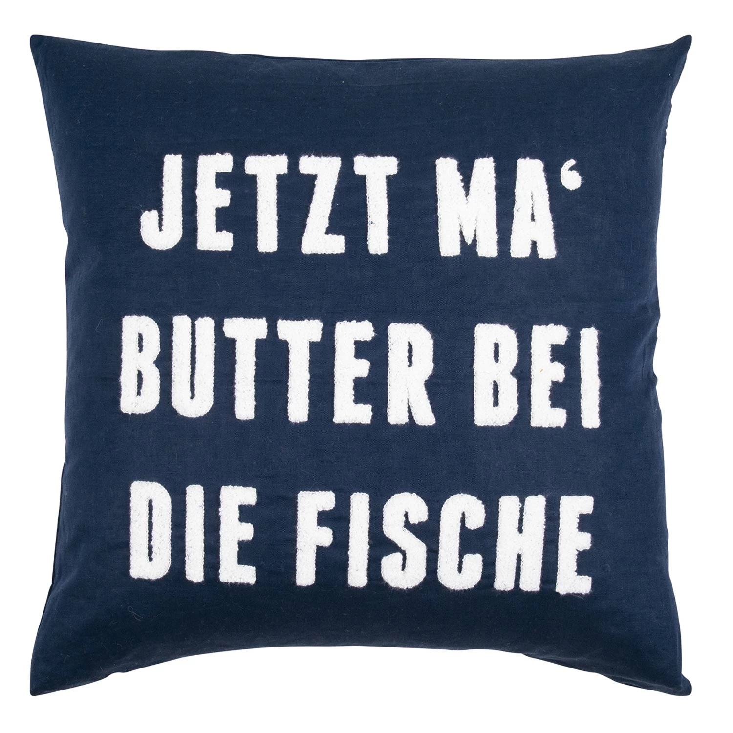 – Bestickter Kissenbezug mit humorvollen Slogans