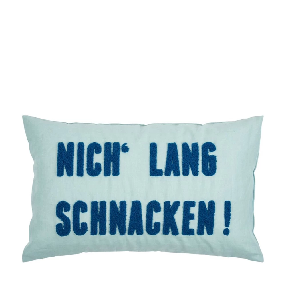 – Bestickter Kissenbezug mit humorvollen Slogans