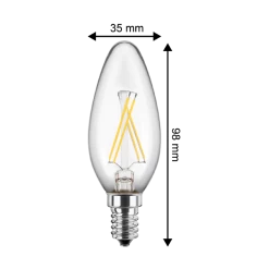 Diese gläserne LED Filament Glühfaden Kerze ist ausgestattet mit 4 Watt und erstrahlt im warmweißen Licht. Dieses Licht verteilt sich über die gesamte Oberfläche der Glühfäden und sorgt für die einzigartige Filament-Optik. Dank des handelsüblichen E14 Sockels findet die LED-betriebene Filament Kerze überall dort Anwendung, wo eine passende Fassung vorhanden ist. Dies ermöglicht einen 1 zu 1 Austausch mit herkömmlichen 40 Watt Kerzen. Als kleines Highlight haben wir uns entschlossen die LED Filament Glühfaden Kerze 4 Watt warmweiß als Promotion im Doppelpack kostengünstig anzubieten.