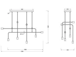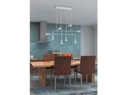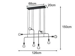 Die Leuchte ist mit acht E-27 Fassungen ausgestattet und kann dadurch mit den Leuchtmitteln Ihrer Wahl ausgestattet werden. Ihre Höchstleistung beträgt 40 Watt pro Fassung. Durch die Maße von 126 cm Länge, 40 cm Breite und 150 cm Höhe gehört sie zur großen Kategorie. Ihre Schutzklasse von IP 20 macht sie besonders sicher in den eigenen vier Wänden. Mit einem Gewicht von knapp drei Kilogramm kann die Leuchte einfach an der Decke montiert werden. Durch den cleanen Look passt sie zu einer modernen Einrichtung.