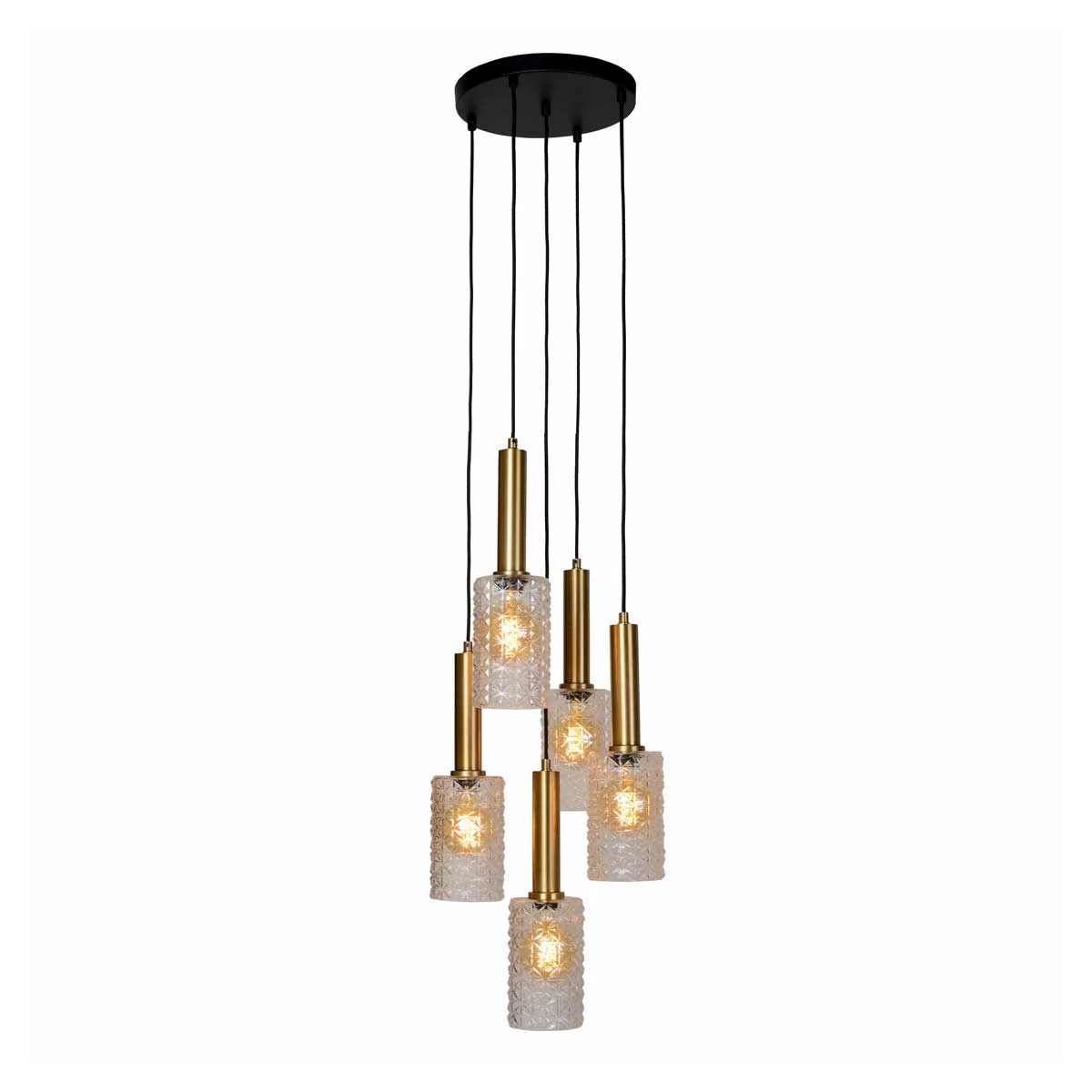 Die 5 E27-Fassungen in Mattgold ergänzen die kunstvollen Gläser. Ein weiteres schönes Detail ist, dass sie die Leuchte ganz nach Ihren Bedürfnissen in der Höhe verstellen können.