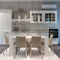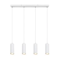 Entdecke die Schönheit und Eleganz unserer Pendelleuchte Dari. Sie wird dich mit ihrem bezaubernden Design begeistern. Die 4 zylinderförmigen Schirme bedecken eine GU10 Fassung, die an einem Kabel 1,2 Meter von der Decke hängen.