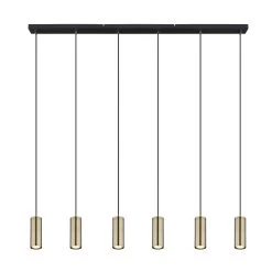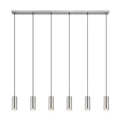 Entdecke die Schönheit und Eleganz unserer Pendelleuchte Dari. Sie wird dich mit ihrem bezaubernden Design begeistern. Die 6 zylinderförmigen Schirme bedecken eine GU10 Fassung, die an einem Kabel 1,2 Meter von der Decke hängen.