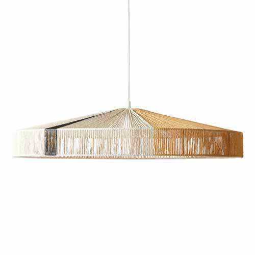 Karibischen Flair für die eigenen vier Wände. Dieses Lampenrondell aus Hanfseil ist mit seinen aufgefädelten Strängen sehr eindrucksvoll verarbeitet. Die hellen Pastelltöne zaubern ein leichtes Ambiente in den Raum. Der Lichtkegel ist von Mustern durchzogen, dadurch entsteht ein schönes Lichtspiel.
