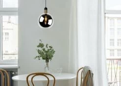 Die Leuchte ist mit einer E-27 Fassung ausgestattet und kann dadurch mit den Leuchtmitteln Ihrer Wahl ausgestattet werden. Ihre Höchstleistung beträgt 60 Watt pro Fassung. Durch die unterschiedlich auswählbaren Maße ist von klein bis groß etwas dabei. Mit einem Gewicht von knapp zwei Kilogramm kann die Leuchte einfach an der Decke montiert werden. Durch den schwarz-goldenen Metall-Look zählt sie zum Vintage Stil. Wir empfehlen ein Leuchtmittel mit Rauchglas für den perfekten Look.