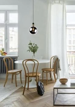 Ein Vintage-Touch für Ihr ländliches Interieur? Oder einfach ein Blickfang für Ihr modernes Zuhause? Hängeleuchte Goldenblub fühlt sich in beiden Gegebenheiten wie zu Hause. Von der Montageplatte hängt ein Leuchtmittel an seinem Textilkabel herunter. Die Glaskugel ist mit einem Fumé-Mantel versehen. Das Geheimrezept, das Goldenblub sein besonderes Aussehen verleiht. Die Kugel ist für die Installation leicht in der Höhe verstellbar. Sie können sie maximal eineinhalb Meter von der Decke herabhängen lassen.