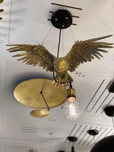 Die Leuchte ist mit einer E-27 Fassung ausgestattet und kann dadurch mit dem Leuchtmittel Ihrer Wahl ausgestattet werden. Die maximale Leistung beträgt hierbei 60 Watt bei einer Schutzklasse von IP20. Durch die Maße von 14 cm Länge und 57 cm Breite sowie 28 cm Höhe gehört sie zur mittleren Kategorie. Mit einem Gewicht von knapp fünf Kilo kann die Leuchte einfach an der Decke montiert werden. Ihre außergewöhnlich handgefertigte Silhouette ist ein wahrer Hingucker.