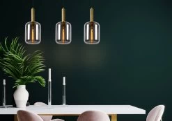 Die Hängeleuchte Joja bezaubert sie mit drei Lichtquellen in Rauchglasoptik. Die großen Gläser verleihen der Leuchte eine gewisse Dynamik. Um die Magie maximal zu genießen, wählen Sie LED Filament Leuchtmittel. Joja können Sie zusätzlich bequem an einen externen Dimmer anschließen um das gewünschte Ambiente zu erschaffen. Wir empfehlen Ihnen Joja als Esstischleuchte zu verwenden.