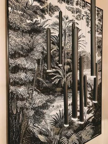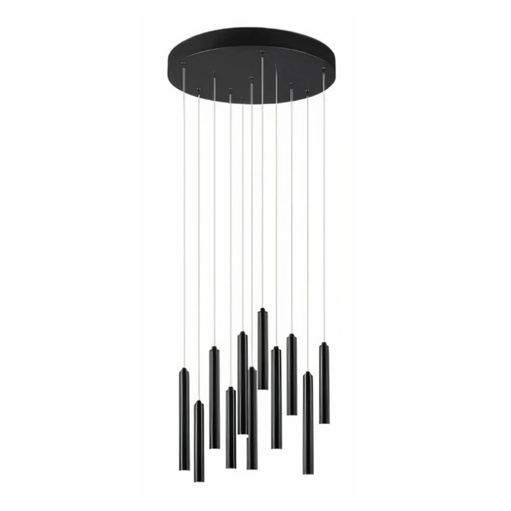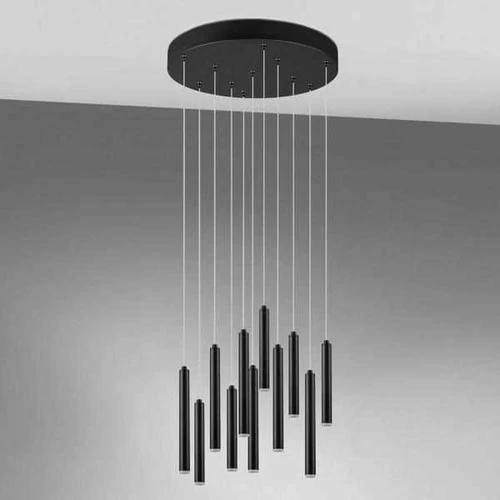 Logan ist mit 11 LED Leuchten ausgestattet und wird in Schwarz geliefert. Der Baldachin und die Leuchtpendel sind aus Metall gefertigt.