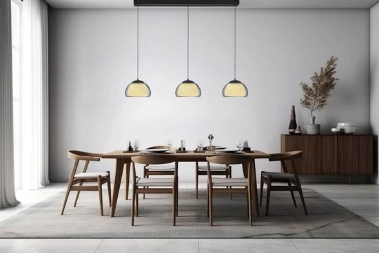 Der Korpus in edlem Schwarz und die Lampenschirme aus Rauchglas verleihen der Lux Leuchte einen eleganten Look, der besonders in modernen Wohn- und Essbereichen ein stilvolles Highlight setzt. Mit einer Leistung von 11 Watt pro Fassung und einem kraftvollen Lichtstrom von 3330 Lumen sorgt die Leuchte für eine optimale Ausleuchtung, ohne dabei an Gemütlichkeit zu verlieren. Die hochwertige Verarbeitung und langlebigen Materialien der Lampe stehen für eine robuste Qualität, die in jeder Hinsicht überzeugt.