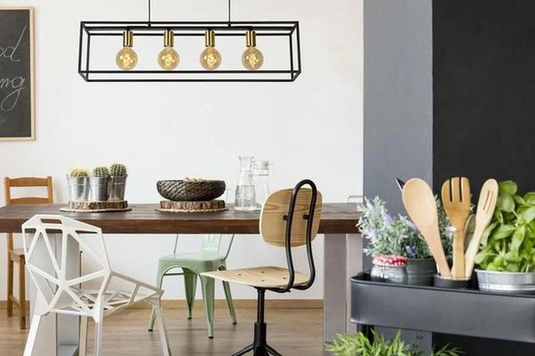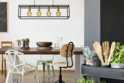 Die Leuchte ist mit vier E-27 Fassung ausgestattet und kann dadurch mit den Leuchtmittel Ihrer Wahl ausgestattet werden. Die maximale Leistung beträgt hierbei 60 Watt bei einer Schutzklasse von IP20. Durch die Maße von 92 cm Länge und 22 cm Breite sowie 150 cm Höhe gehört sie zur großen Kategorie. Mit einem Gewicht von knapp drei Kilo kann die Leuchte einfach an der Decke montiert werden. Ihre Metallstreben passen zum Industrial Design.