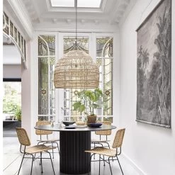 Die handgefertigte Pendelleuchte Mateo ist durch ihren Schirm aus Weidengeflecht ein ganz besonderes Schmuckstück. Das Geflecht bietet durch die besondere Anordnung ein wunderschönes Lichtspiel.