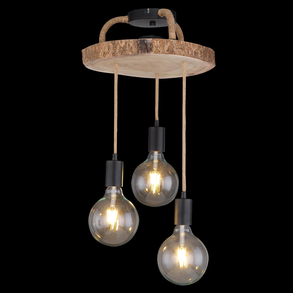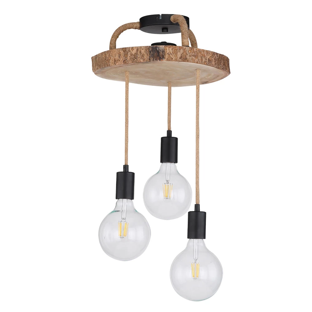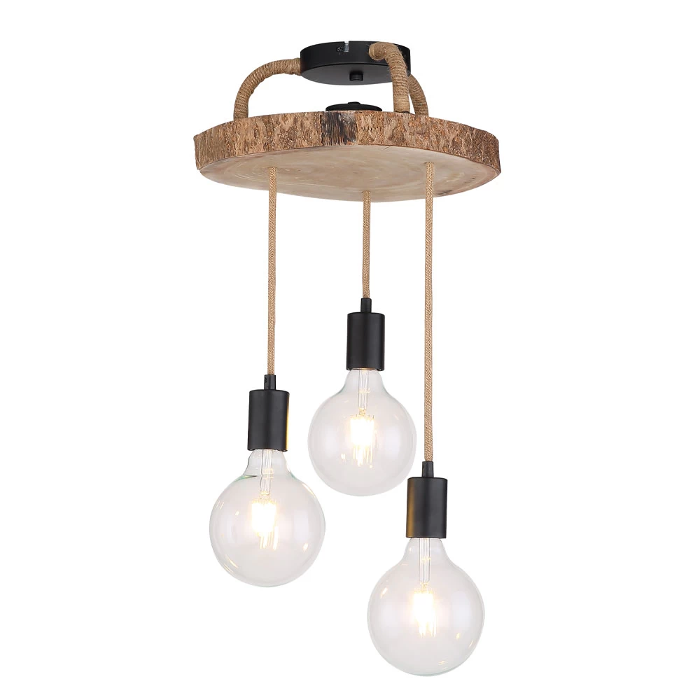 Die Leuchte ist mit drei E-27 Fassungen ausgestattet und kann dadurch mit dem Leuchtmittel Ihrer Wahl ausgestattet werden. Ihre Höchstleistung beträgt 60 Watt pro Fassung. Durch die Maße von 30 cm Länge, 30 cm Breite und 60 cm Höhe zählt sie zur mittleren Kategorie. Mit einem Gewicht von knapp zwei Kilogramm kann die Leuchte einfach an der Decke montiert werden. Durch den rustikalen Holz- Look entspricht sie dem Vintage- und industriellen Stil.
