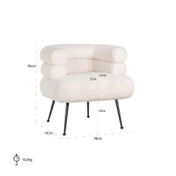 Mit einer einer Breite von 78 cm, einer Höhe von 76 cm und 75 cm Tiefe eignet sich der Sessel perfekt für die Verwendung im Wohnzimmer, Schlafzimmer oder in der Leseecke. Auf Grund der Farbe und des Designs gehört Blanche in die Modern Living Stilrichtung.