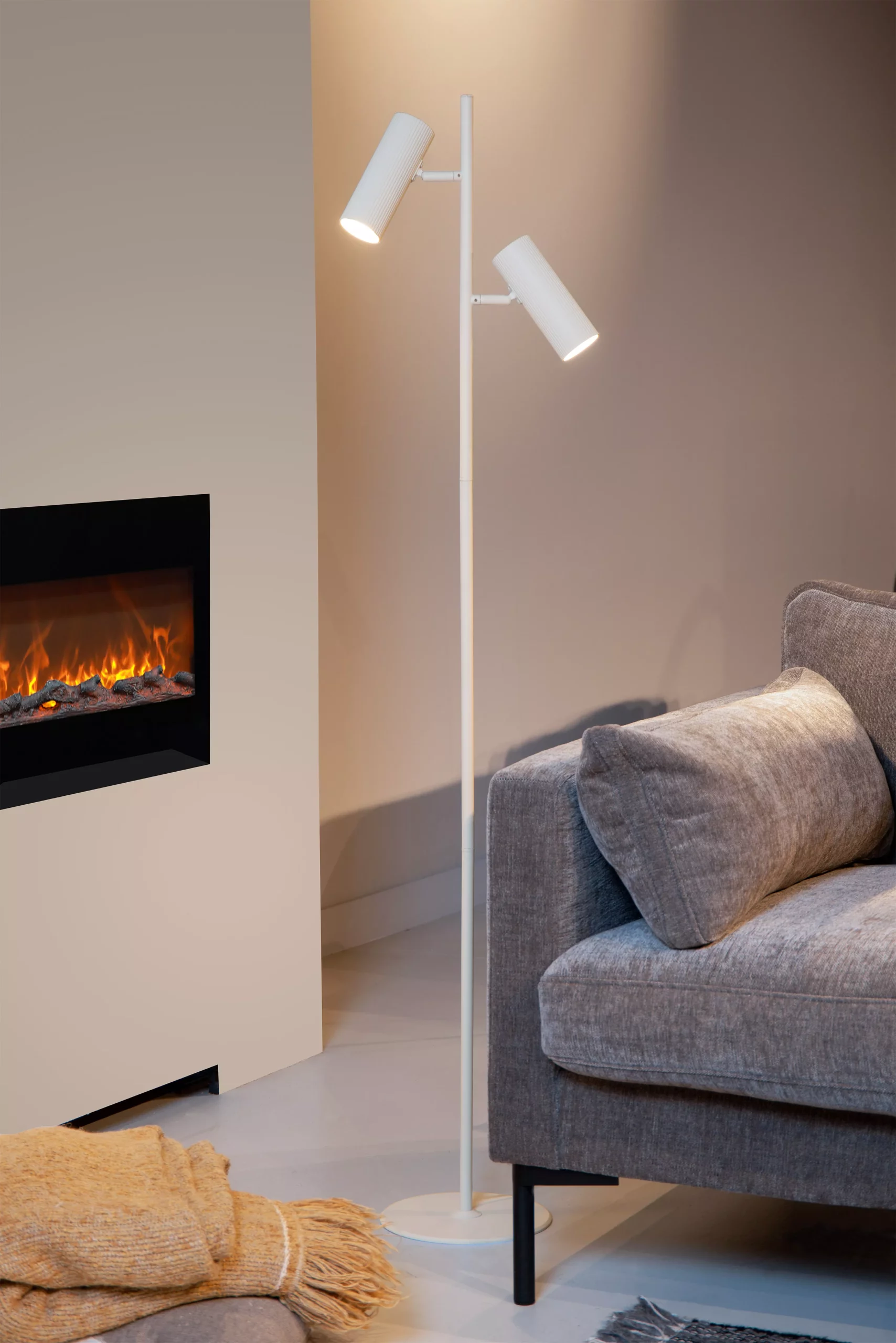 Die Icon Stehleuchte beeindruckt mit einer eleganten Höhe von 140 cm und bringt modernen Stil in jede Sitzecke, ohne aufdringlich zu wirken. Gefertigt aus hochwertigem Aluminium, besticht die Leuchte durch ihr schlankes, minimalistisches Design. Die beiden zylindrischen Lampenschirme bieten Platz für zwei LED-Lichtquellen, die Sie unabhängig voneinander drehen und neigen können, um das Licht optimal auszurichten.