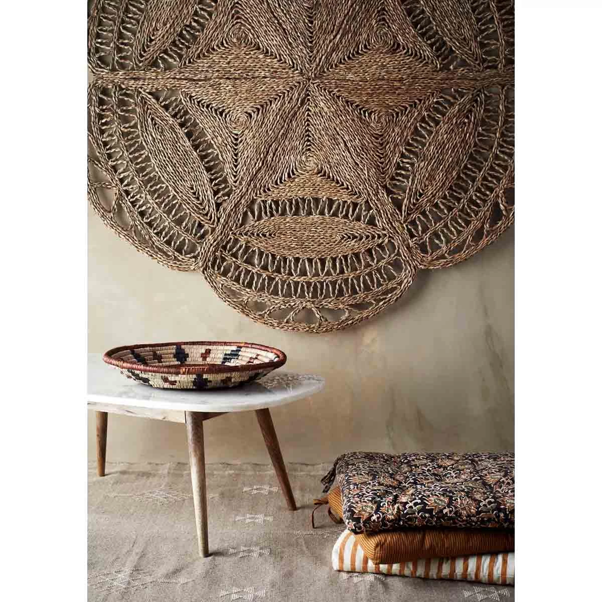 Der Teppich wurde aus Seegras hergestellt und verspricht somit eine lange Lebensdauer. Auf Grund der Farbe und des Designs gehört der Teppich in die Boho und Nature Stilrichtung. Die Besonderheit an diesem Teppich ist, dass er komplett von Hand gewebt wurde und somit viele Stunden Handarbeit in Ihm stecken