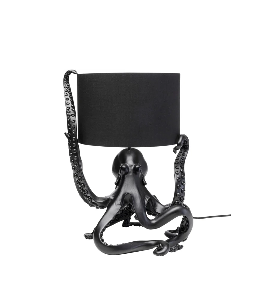 Bringen Sie mit unserer schwarzen Tischlampe einen Hauch von Kreativität und Stil in Ihr Zuhause! Diese auffällige Lampe misst 47 x 36,5 x 32,5 cm (H/B/T) und präsentiert sich mit einer einzigartigen Tierfigur – einem Oktopus – als originellem Lampenfuß. Dieses Design-Highlight wird zum Blickfang in jedem Raum und sorgt für faszinierende Gespräche.