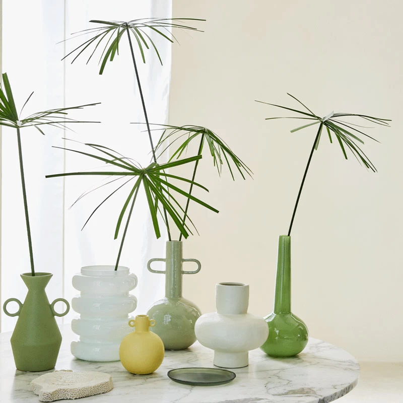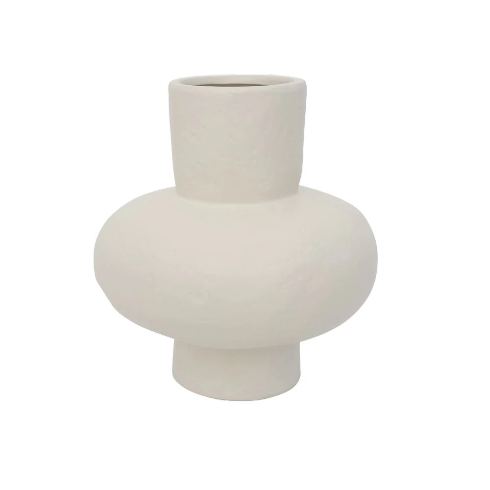 Die Vase wurde aus Steingut hergestellt und verspricht somit eine lange Lebensdauer. Auf Grund ihrer hellen Farbe und des Designs gehört die Vase Daisy in die Nature, Skandinavien oder Art Stilrichtung.