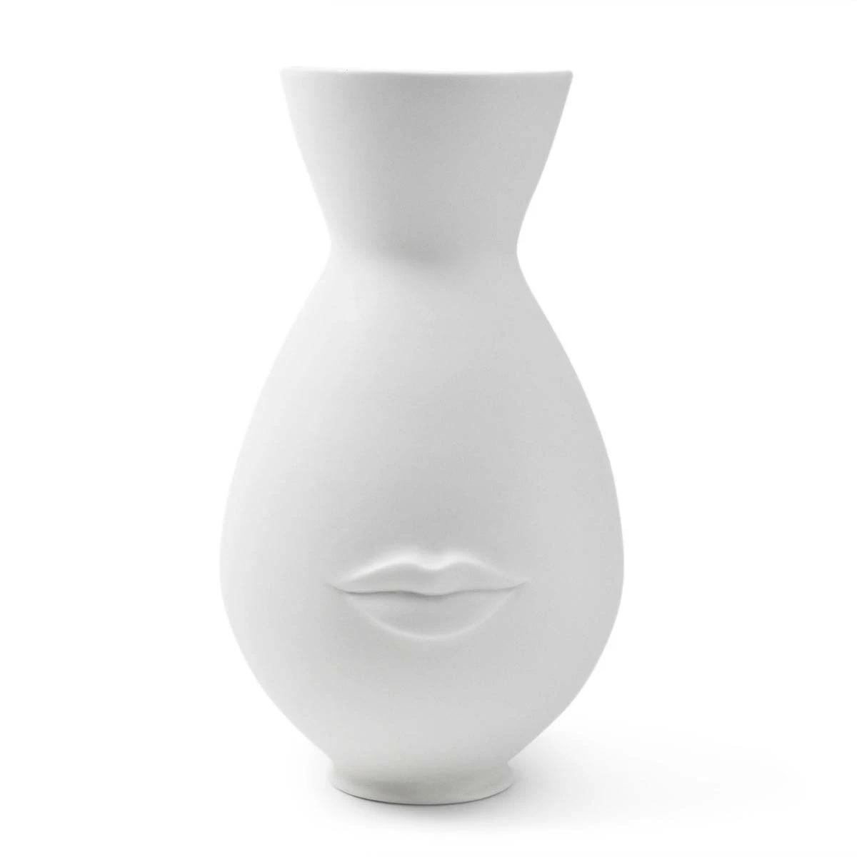 Auf der einen Seite mit Schnurrbart, auf der anderen mit vollen Lippen – unsere Mr. & Mrs. Muse Vase ist aus hochgebranntem, mattem Porzellan gefertigt. Inspiriert von unserer Liebesaffäre mit Salvador und Misia.