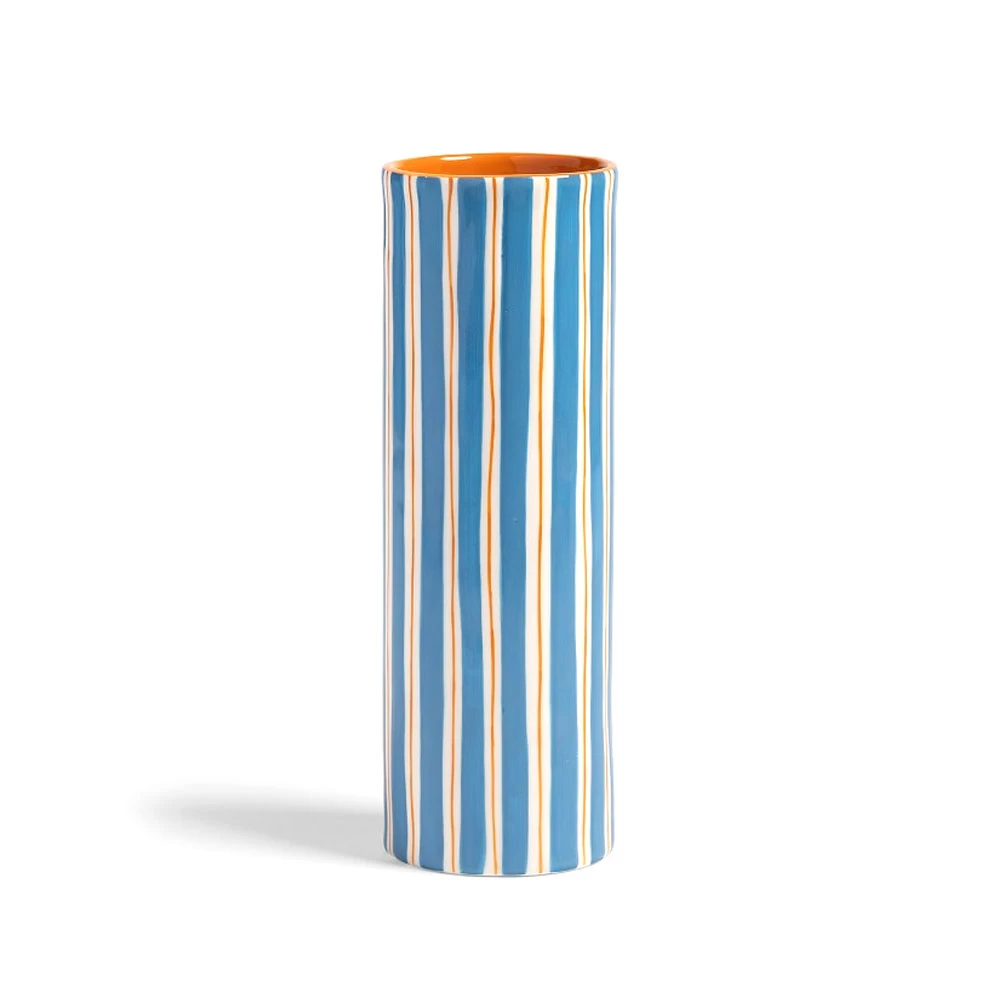 Du bist auf der Suche nach einer besonderen Vase für Dein Zuhause? Dann haben wir genau das Richtige für Dich! Die handbemalte Porzellanvase Stripes in Blau/Orange bzw. Blau/Grün wird Dein Herz höher schlagen lassen. Das unregelmäßige Streifenmuster gibt der Vase eine einzigartige Optik, die sofort ins Auge fällt.