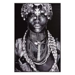 Mit einer Breite von 82,5 cm, einer Höhe von 122,5 cm und einer Tiefe von 5,5 cm eignet sich der das Wandbild Nambola perfekt für die Verwendung im Wohnzimmer, Flur oder im Esszimmer. Die verwendeten Materialien sind Holz sowie Leinwand und Acrylfarbe.