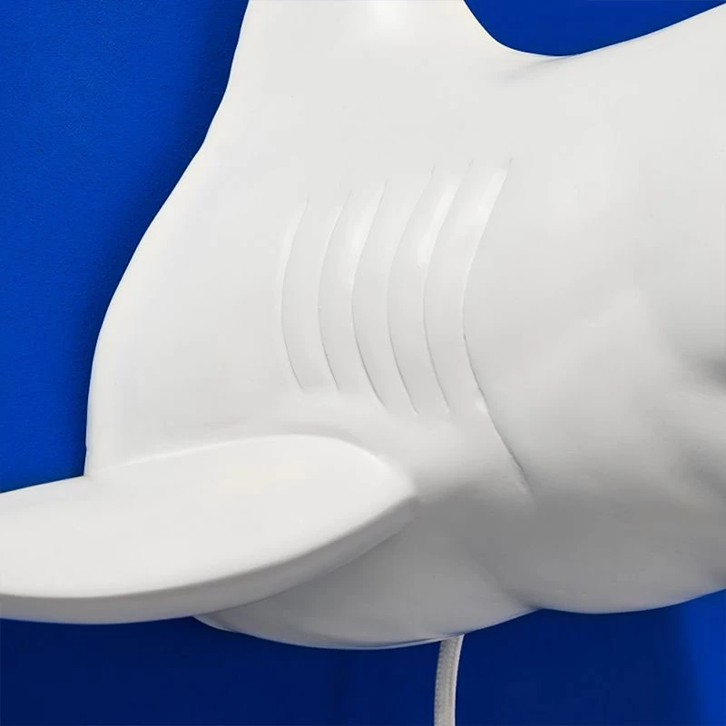 Die Wandleuchte Weißer Hai, eine atemberaubende Leuchte, die dein Zuhause in ein magisches Unterwasserparadies verwandelt.