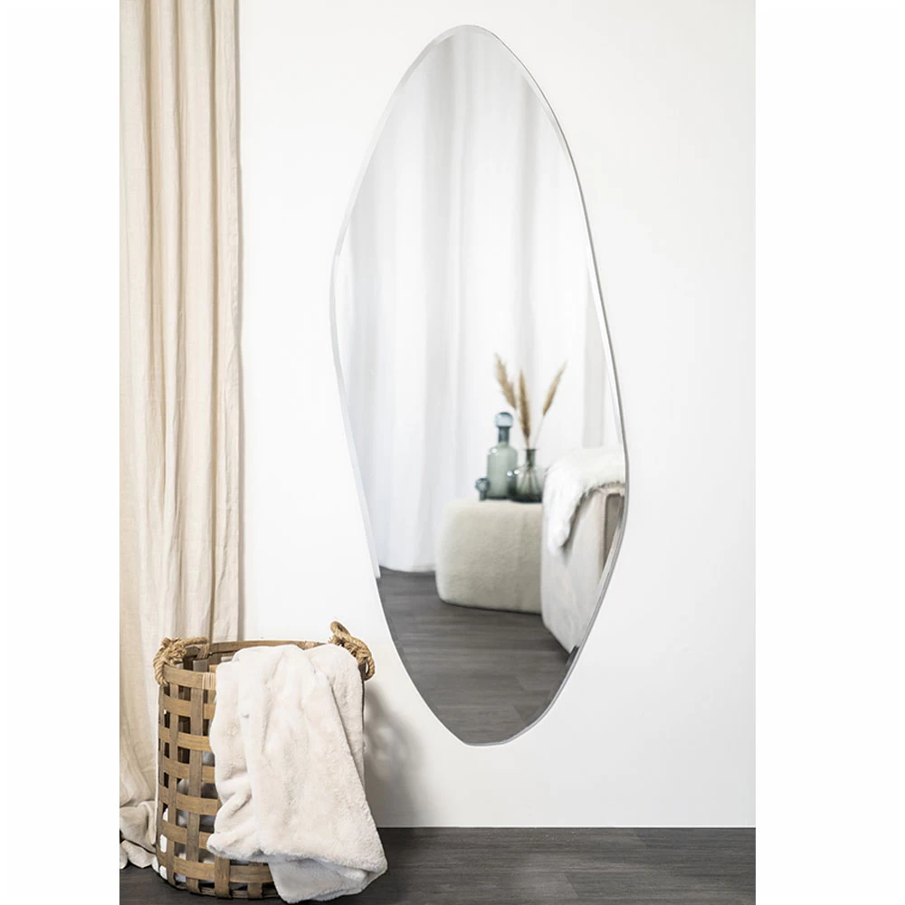 Mit seiner geschwungenen Form und einer Größe von 150 cm x 60 cm (HxB) eignet sich der Wandspiegel Tani perfekt für die Verwendung im Wohnzimmer, Flur oder im Ankleidezimmer.