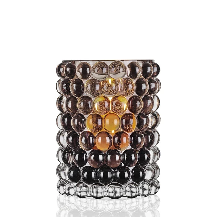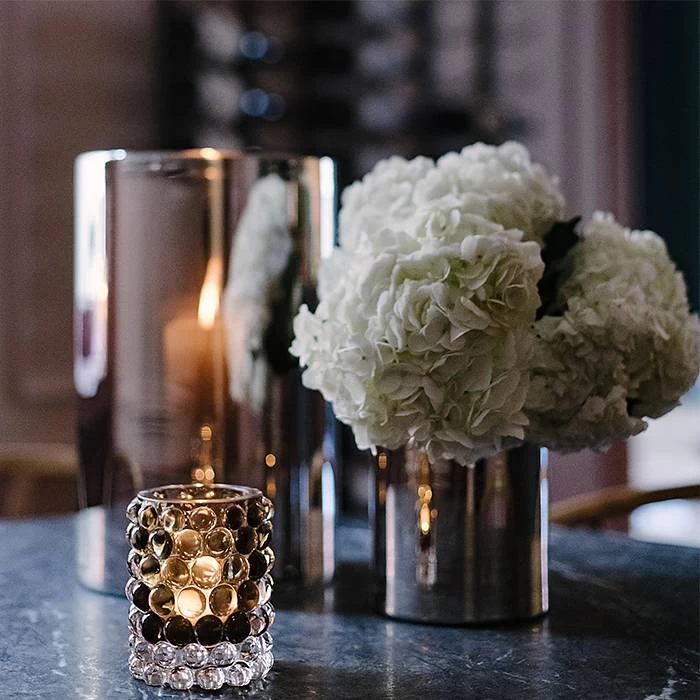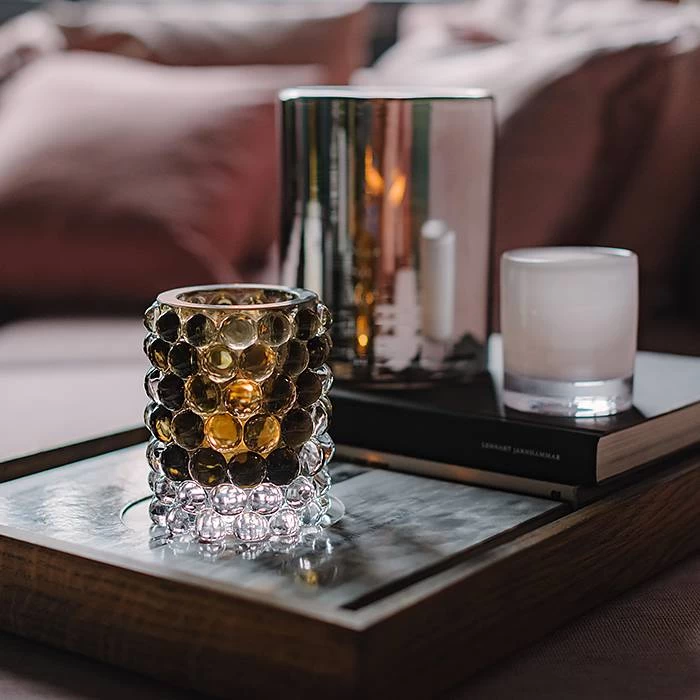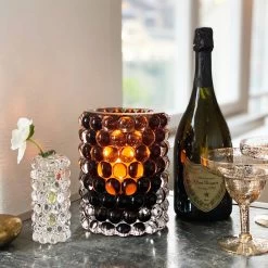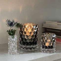 Die Windlichter Hurricane Boule sind mundgeblasen mit einem einzigartigen Muster, dass ein luxuriöses Gewicht und einen strahlenden Lichtschein erzeugt. Die Glasmasse wird zunächst in eine gusseiserne Form geblasen. Dann werden die Blasen per Hand geformt. So entsteht ein exklusives Windlicht mit imposantem Gewicht und prächtigem Kerzenschein.